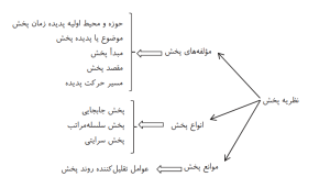 نظریه «پخش» یا «اشاعه» یکی از نظریههای رایج در باب چگونگی انتشار پدیدهها و گسترش ایدهها و اندیشههاست که در حوزههای متعدد مطالعاتی مطمح نظر پژوهندگان است. اشاعه یا پخش عبارت است از فرایندی که بر طبق آن یک امر فرهنگی (یک نهاد یا یک اختراع فنی و جز آن) که مشخصه یک جامعه است، در جامعه دیگری به عاریت گرفته شده و مورد پذیرش قرار میگیرد. (برزگر، 1382: 42) این نظریه در واقع به تبیین و تشریح کیفیت و چگونگی گسترش یک پدیده یا نوآوری در طول زمان و در گستره یک فضای جغرافیایی میپردازد تا از این طریق، علل و دلایل پخش و گسترش یک رویداد یا پدیده را از منطقهای به مناطق دیگر کشف کند. این نظریه در بسیاری از مسائل سیاسی، اجتماعی، پزشکی، اقتصادی و فرهنگی چون گسترش محبوبیت یک نماینده انتخاباتی در بین مردم، چگونگی پخش انواع مد لباس و رفتار در مکانهای شهری و روستایی، دلایل گسترش یک نوع موسیقی و ترانه در بین مردم، پخش بیماریهای واگیر در بین چندین کشور و گسترش استفاده از تلویزیون رنگی از شهرهای بزرگ به مناطق روستایی به کار گرفته شده است. (حسینی و برزگر، 1392: 174) در مجموع، این نظریه گسترش هر نوع نوآوری فکری یا فیزیکی را تبیین میکند. هاگر استرند انواع پخش را اینگونه بیان میکند: